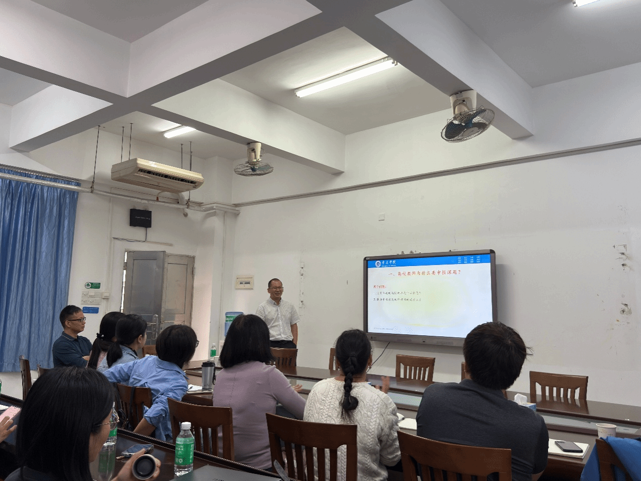蔡振治强调,国家级项目是学科建设和教师发展的“生命线”,要求全体青年教师高度重视、早谋快动、精准出击。朱家德教授结合自身国家社科基金课题案例,从研究热点到个人积累的双轮驱动视角,示范如何提炼选题、搭建框架与持续产出。会议还梳理了全国教科规划、教育部、省社科等项目申报时间,明确2026年国家项目申报工作节点。