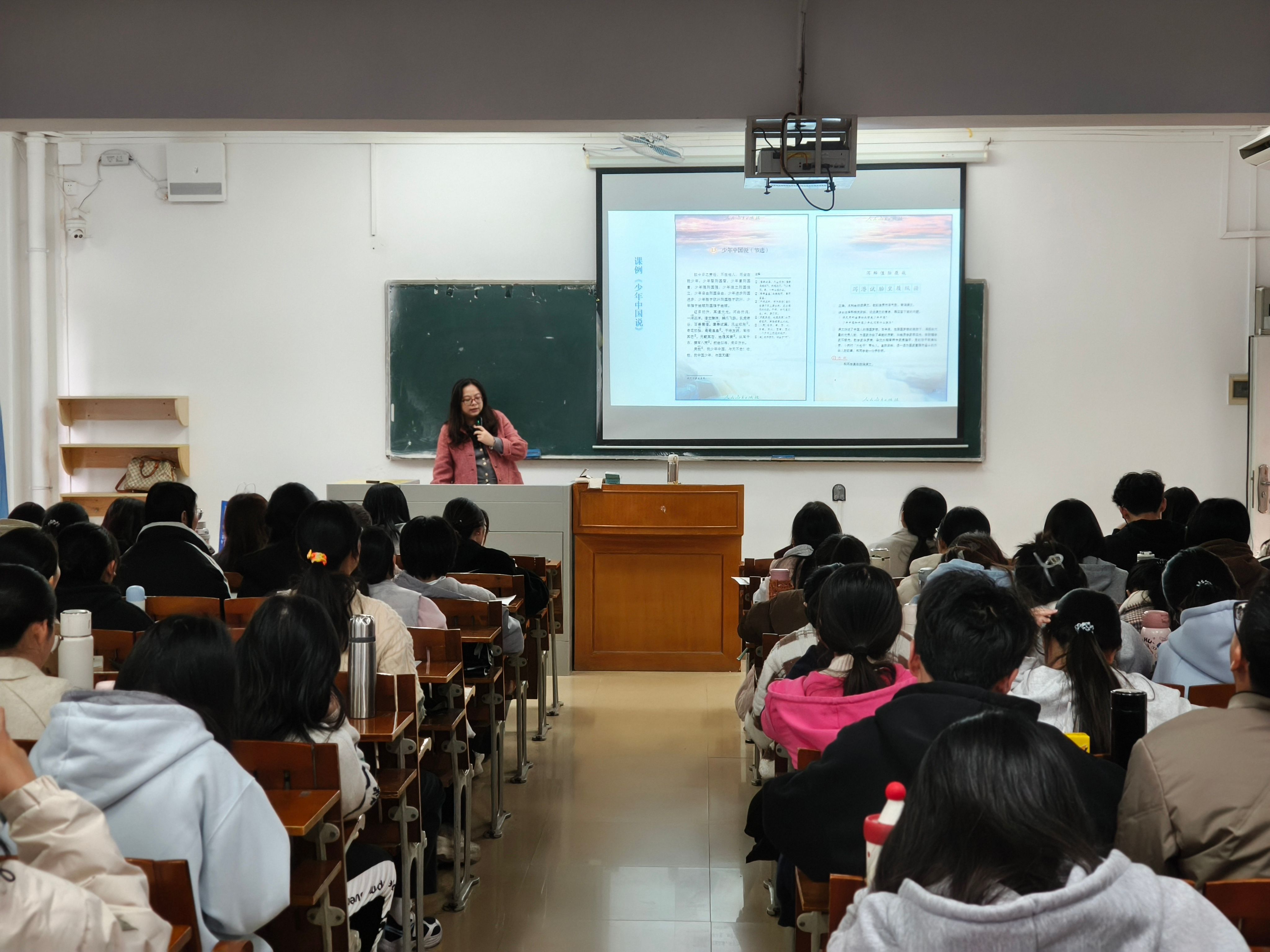 然后,针对在座的师范生,陈校长提出了三点殷切希望:一是争做贪心的学习者,广泛涉猎,不断汲取专业知识与生活智慧;二是成为有心的模仿者,主动观摩、研究优秀课例,在模仿中领悟教学精髓;三是勇于做大胆的实践者,积极争取实践机会,在真实的教学场域中尝试、反思、创新,逐步形成个人教学风格。