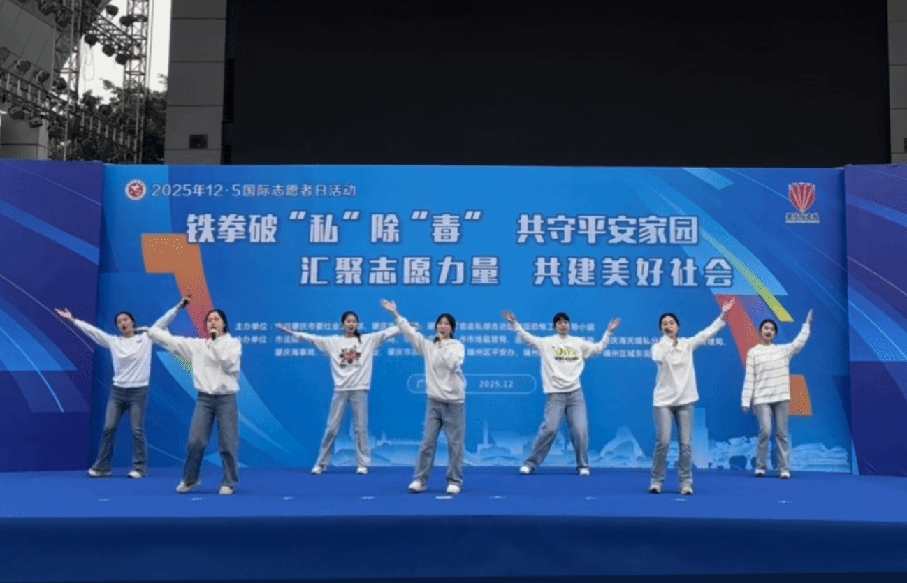 2025年12月4日,教科学子受邀参与肇庆市公安系统在牌坊广场举办的“铁拳破‘私’除‘毒’ 共守平安家园”法治宣传活动,以青春风采助力法制宣传。