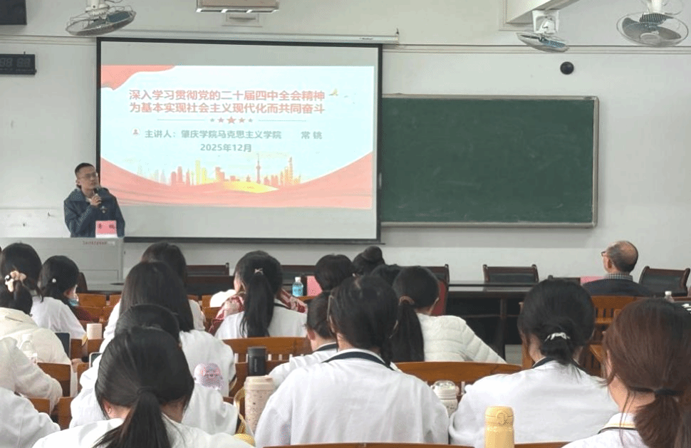 为深入学习贯彻党的二十届四中全会精神,使广大师生把思想和行动切实统一到党中央决策部署上来,12月10日下午,我院在三教505教室举行专题宣讲会。会议由马克思主义学院教师常铫主讲,我院师生党员代表近80人参会。